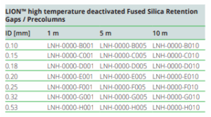 LION deaktivirani retention gaps od fuzionog silicijum-dioksida/pretkolone